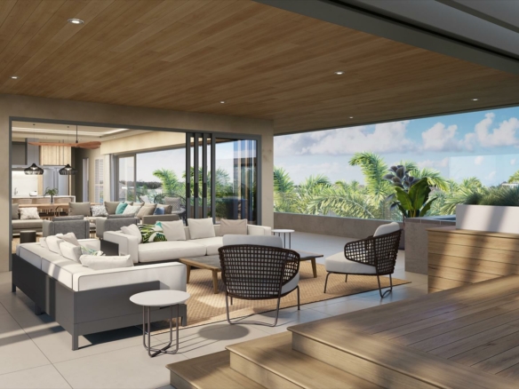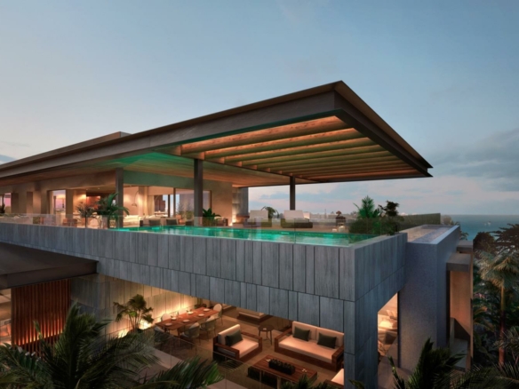 The penthouse seamlessly blends indoor and outdoor living, with a spacious terrace and a slated pool, offering an unrivaled vantage point to appreciate the natural beauty that surrounds you. Host intimate gatherings or simply unwind while the sun dips below the horizon.