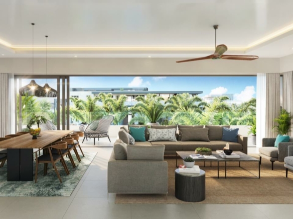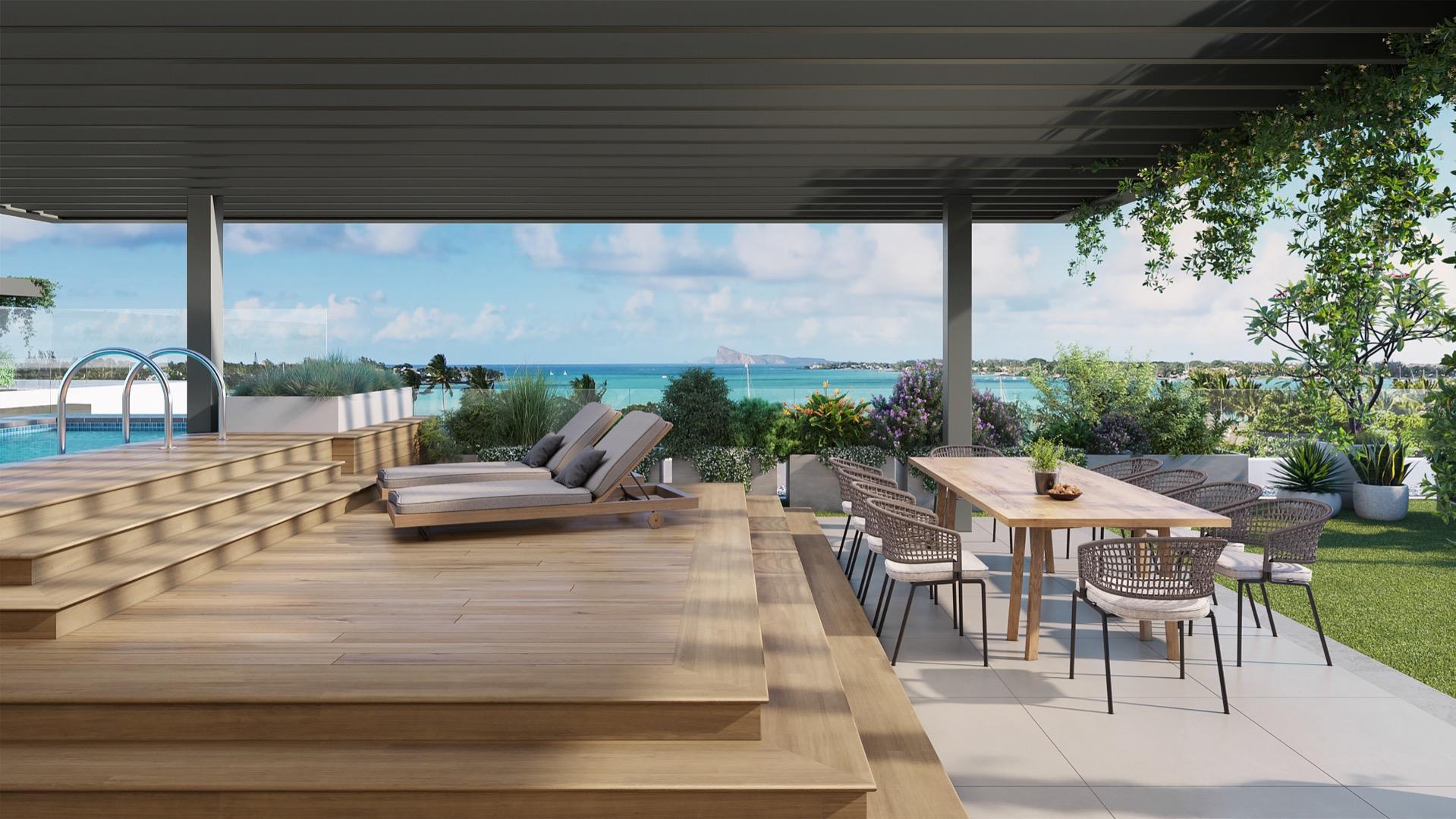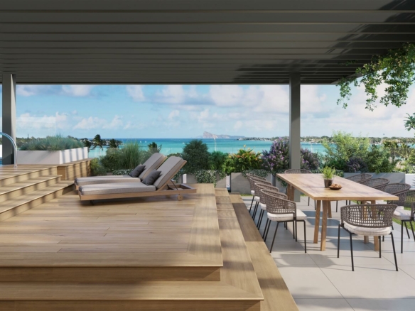 Nestled within the prestigious Golf and Beach Estate, this fabulous 3 bedroom penthouse offers an unparalleled lifestyle of opulence and leisure. You will find yourself in the perfect blend of sophistication and natural beauty as you wake up to breath taking views of the turquoise lagoon with the iconic Coin de Mire island as a backdrop.