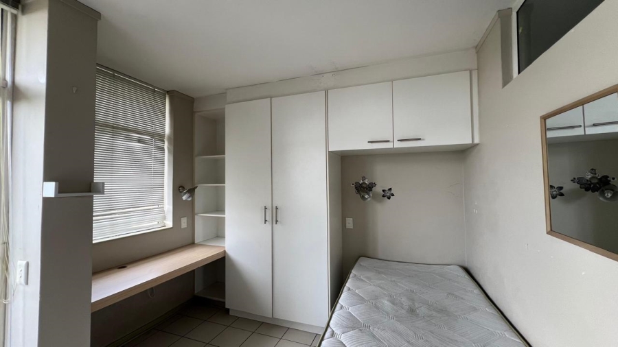 Key Features: 2 Beds, 2 sets of cupboards 1 Bathroom, 1 bath and 1 shower. 2 Study Desks, perfect for focused academic work Balcony for added space and fresh air Prepaid Electricity Burglar Bars and Security Gate for added safety Parking bay in basement, as well as vistors parking on the ground floor. Central Location with easy access to universities and amenities Just a walk away from the University of Pretoria This apartment is an excellent choice for students or young professionals seeking comfort, practicality, and proximity to Pretoria’s academic and social hubs.