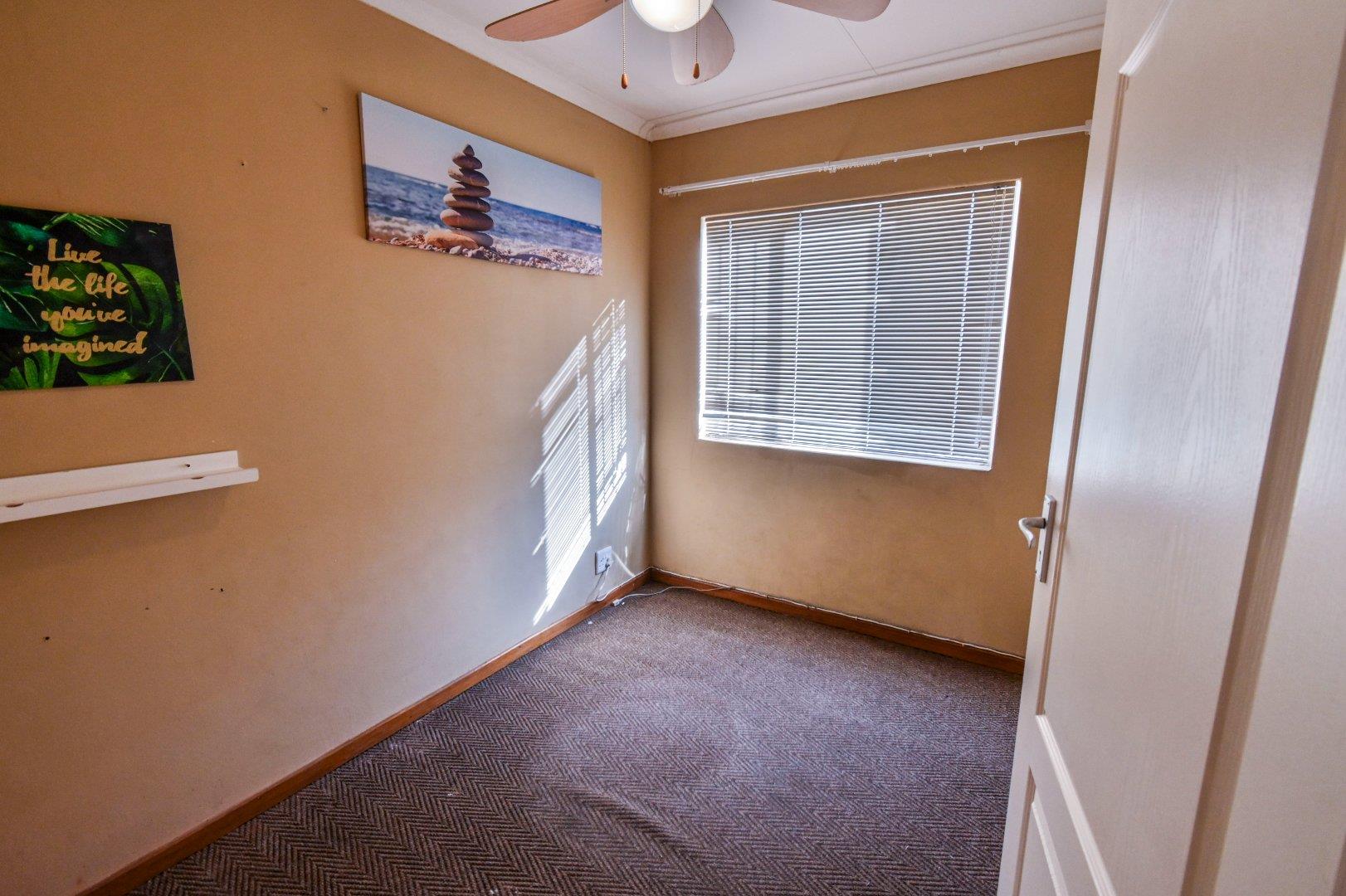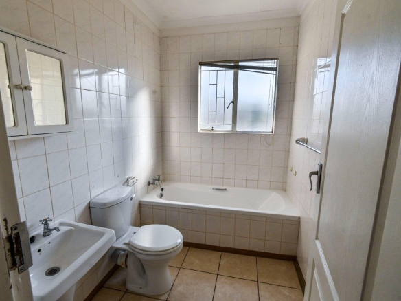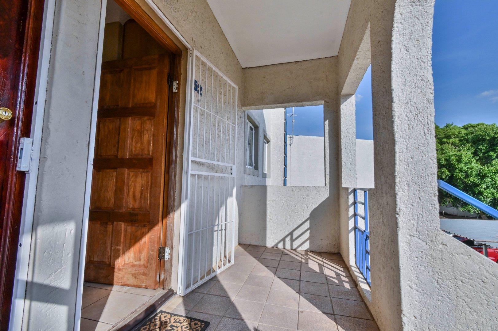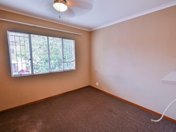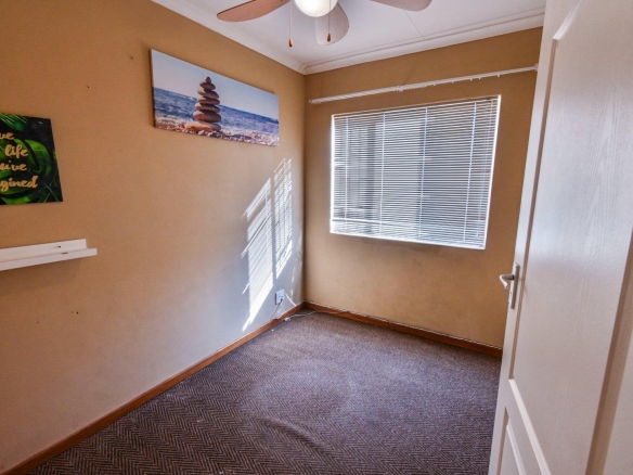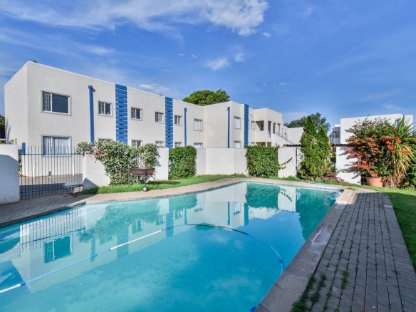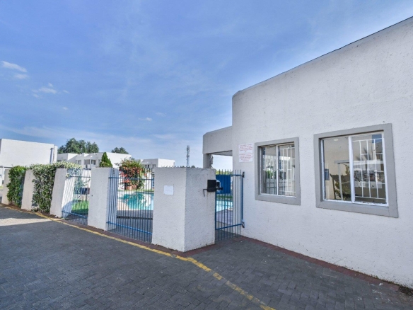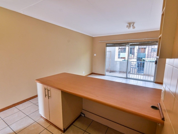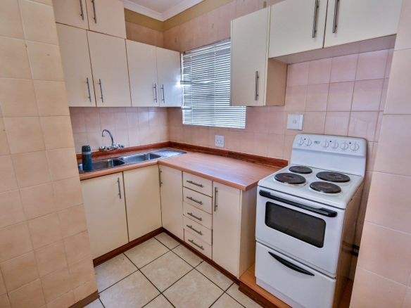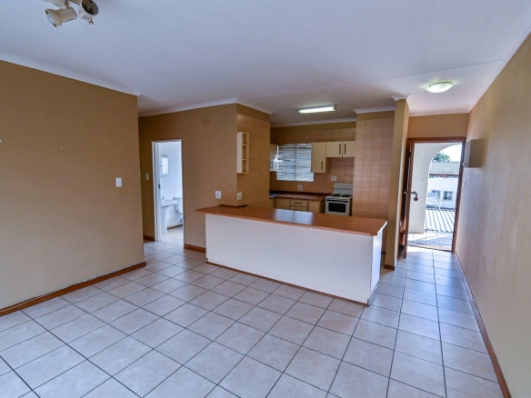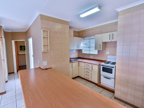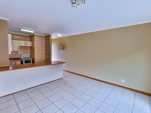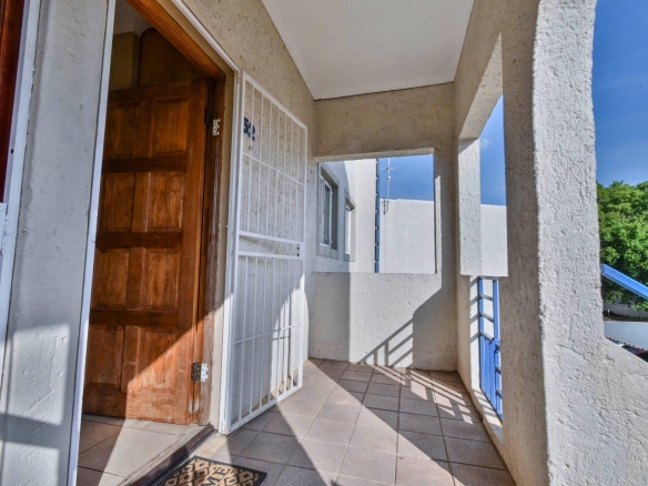 Top floor unit townhouse in a newly repainted complex with a communal pool and entertainment area with changing rooms and bathroom facilities perfect for a special birthday pool party function on request. The very neat open-plan living area opens up to an enclosed patio tiled balcony. Very practical kitchen with ample built-in cupboards, breakfast nook, washing machine connection, and loose standing stove.