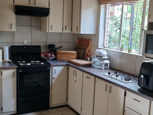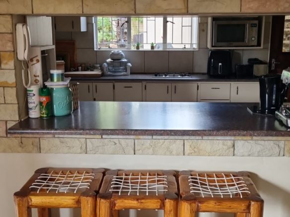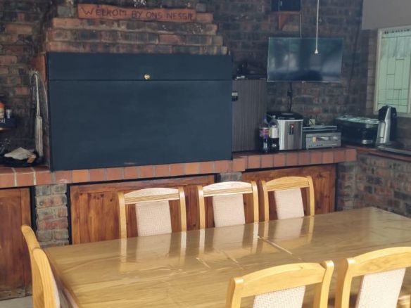 Enjoy outdoor gatherings and barbecues with a built-in braai and sliding doors that lead to the inviting pool area.