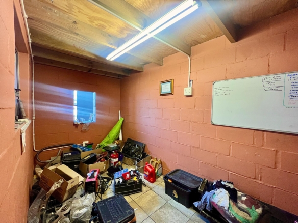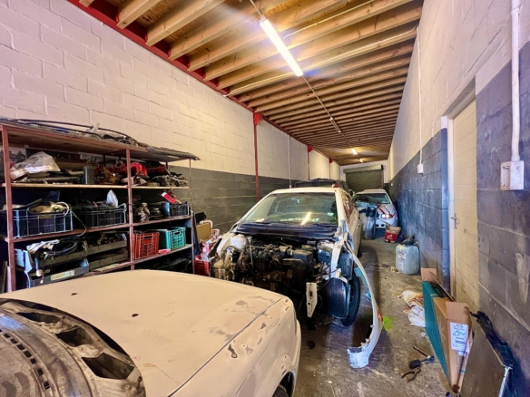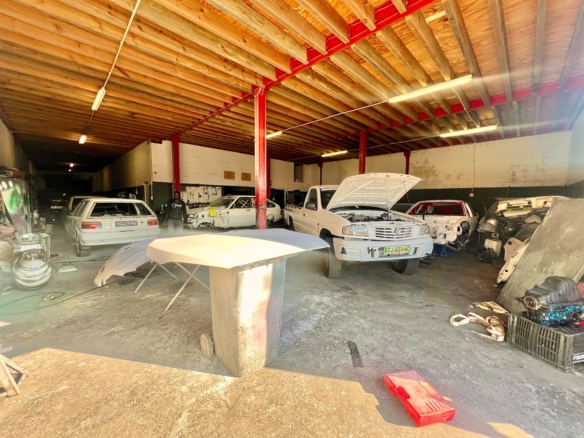 Key features include two roller shutter doors at both ends of the building, offering convenient access, as well as approximately 8 parking bays. The layout boasts a spacious workshop, a welcoming reception area, ablution facilities, a kitchen, and a dedicated staff area.