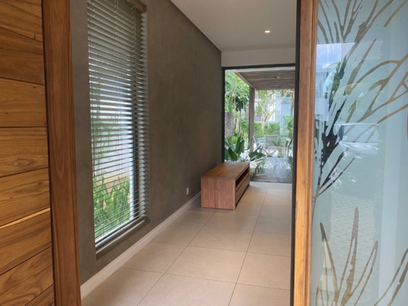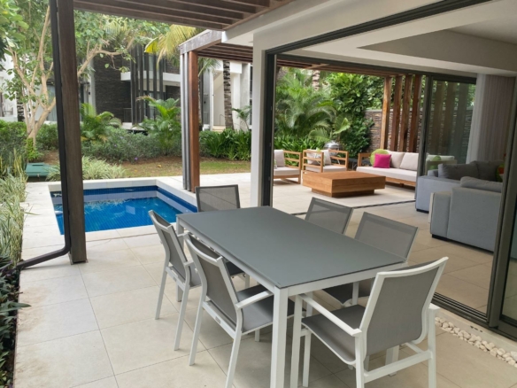 – Expansive glass doors that beckon you to step onto your private terrace, where a pristine pool and landscaped garden await your enjoyment.