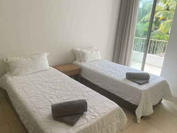 – Three en-suite, air-conditioned bedrooms adorned with built-in cupboards, each offering access to a private patio or balcony.