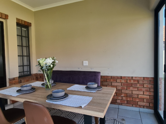 Open-Plan Living Area: Seamlessly connected to a closed patio, perfect for dining while enjoying the view of the garden.