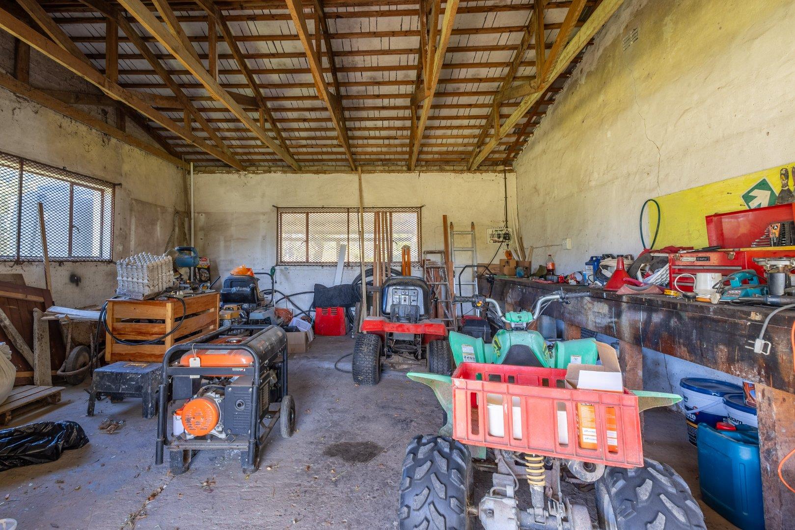 A large shed and storeroom for storage of farm utensils, appliances and vehicles