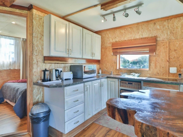 Owner’s home: 2 bedrooms, 2 bathrooms, kitchen, lounge, and patios with north-facing views