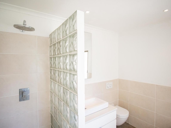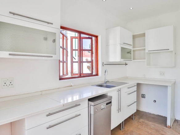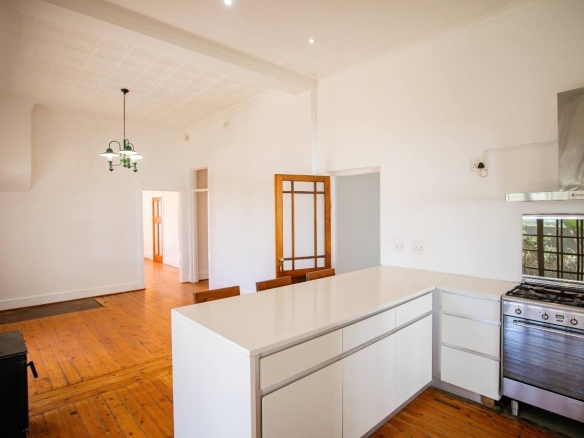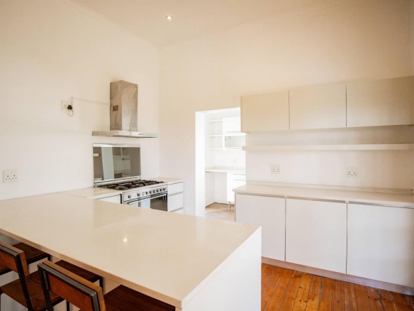 – Modern Caesarstone kitchen, Smeg gas stove and separate scullery