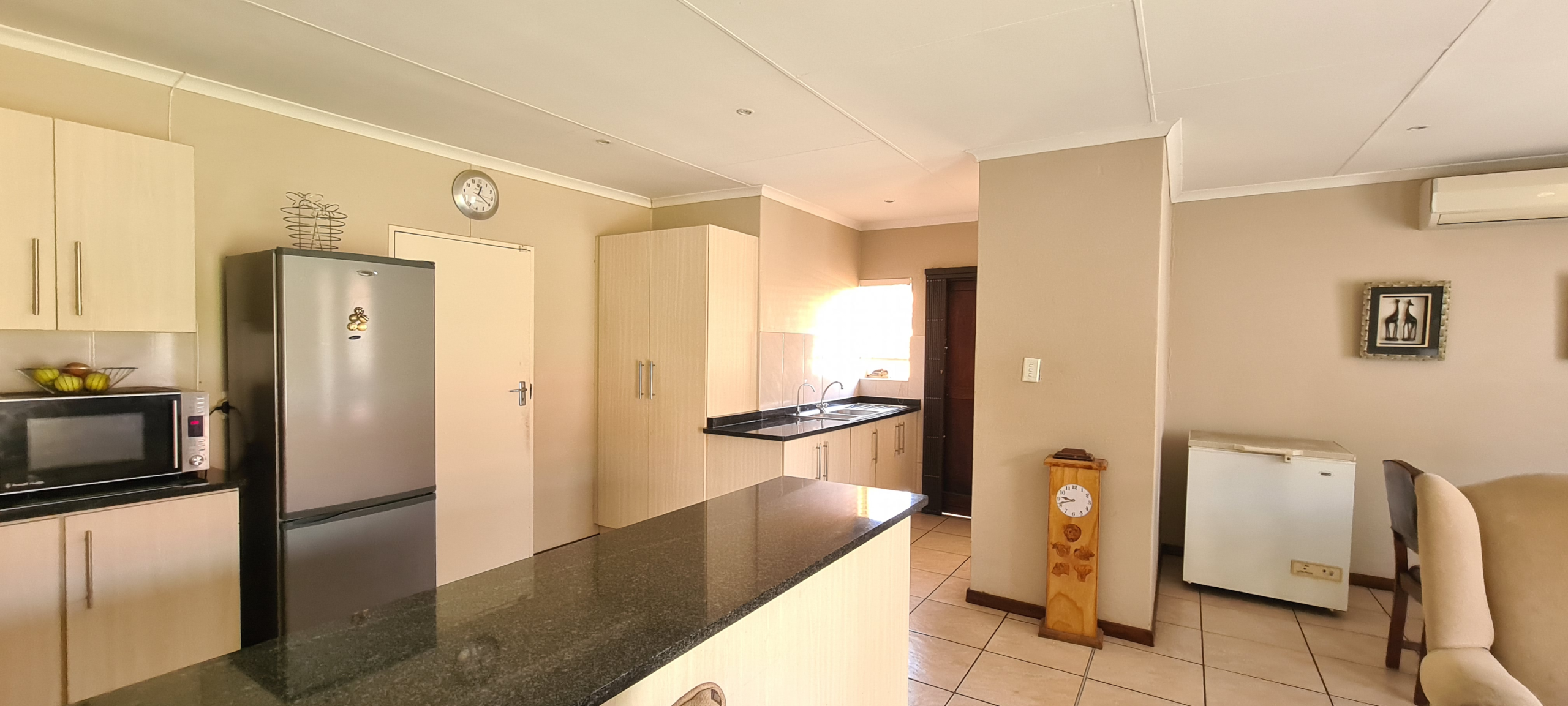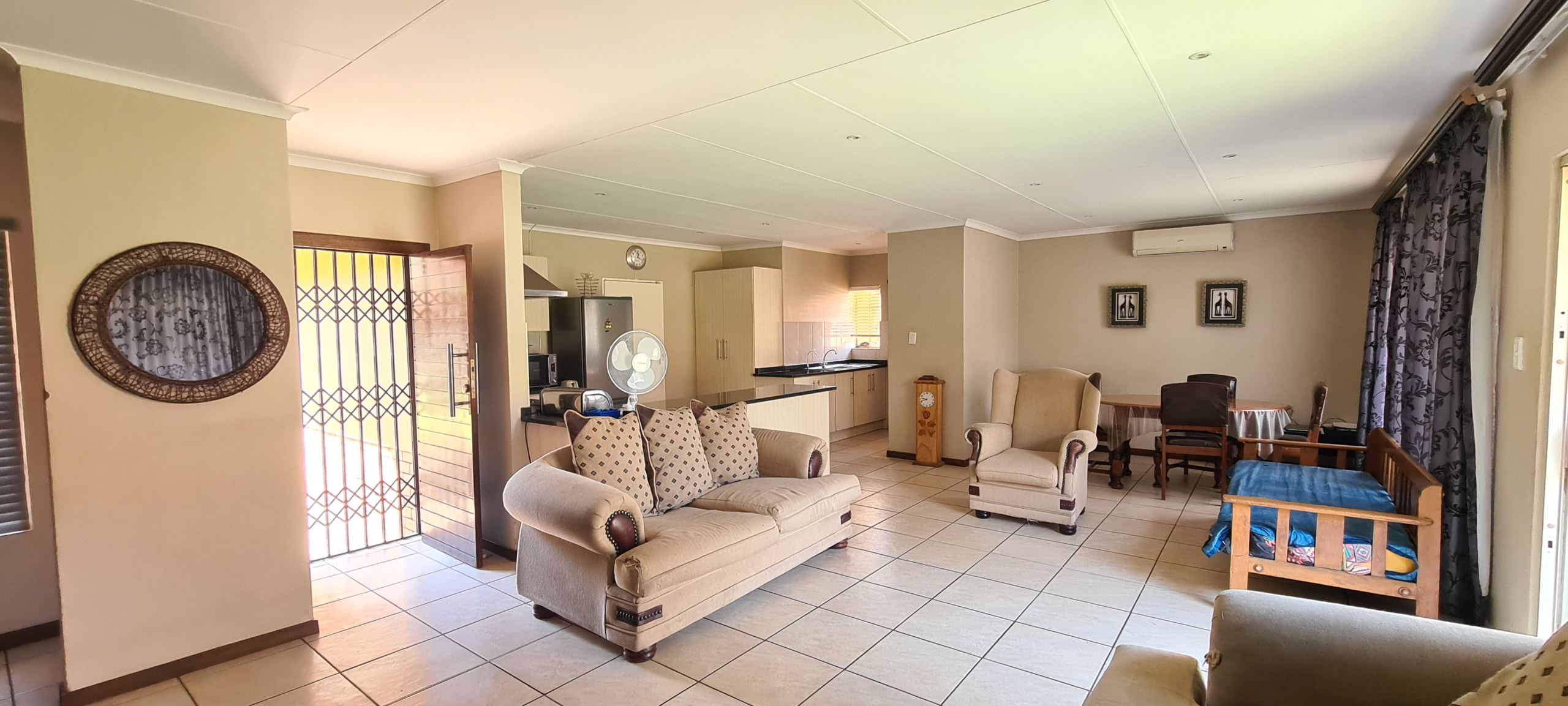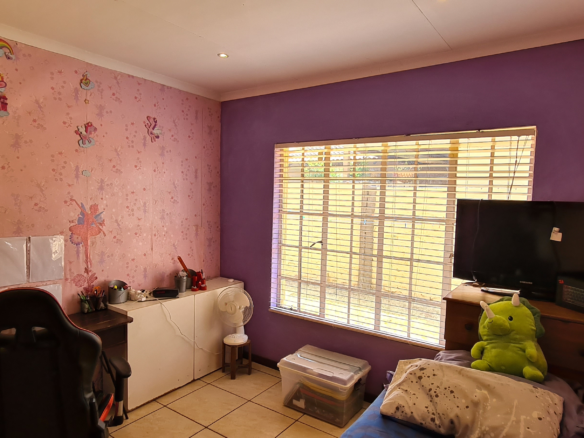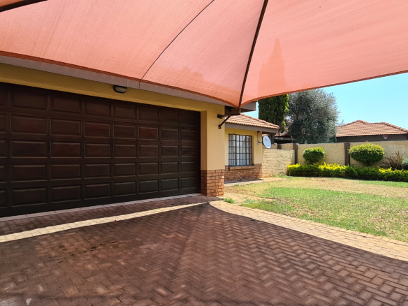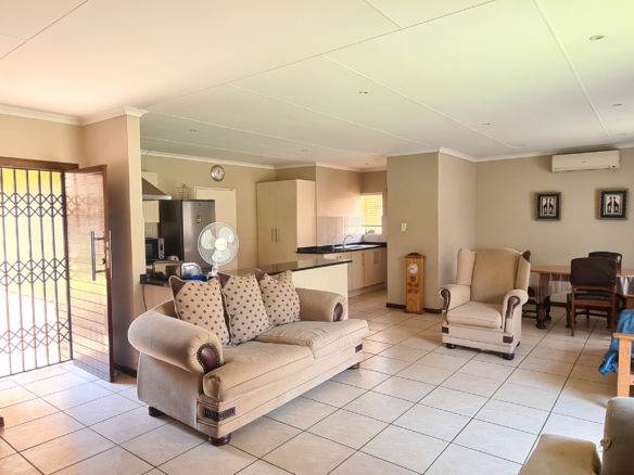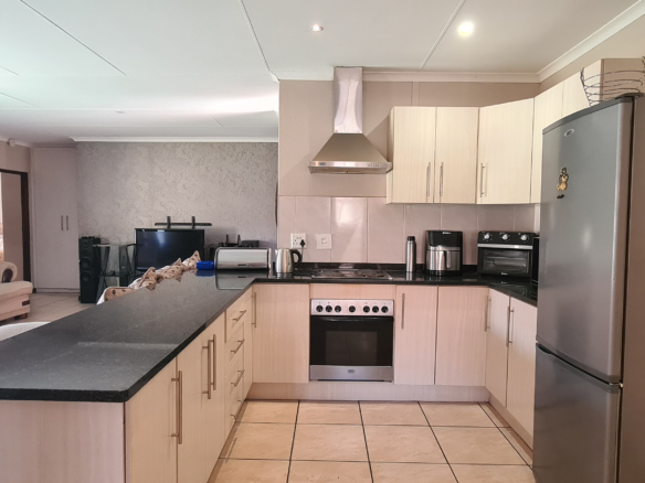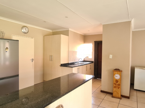 Immaculate home located in a restful sought after estate just a few minute drive away from Shopping centers. Master bedroom with an en-suite on one side of the corridor and the other 2 bedrooms on the separate side with their own shared bathroom the interior features an easy flow living with the kitchen(with a scullery) standing in full view of the living area and dining area. Well manicured garden throughout the exterior of the property. Double Garage and double carport. The estate has a open air gymnasium located on the park. If estate living with ample amount of space for kids to play and 24 hour security is what you are looking for then this is the home for you