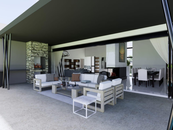 An outdoor entertainment area , covered with a build in braai facility and an outdoor kitchen, any entertainers dream overlooking your crystal clear pool (available as an optional upgrade) forms part of the bushveld scene and Africa’s sunset hue’s paints a different picture every sunset
