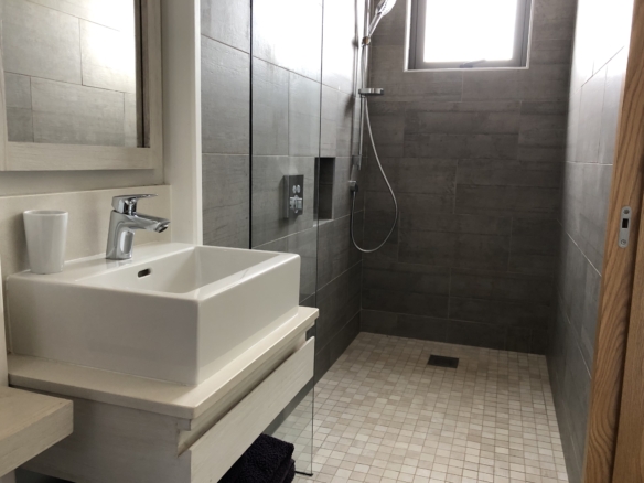 You’ll find three bedrooms, each with its own bathroom and equipped with air conditioning and convenient built-in closets. The main bedroom even has a walk-in closet for added luxury. Plus, there’s a laundry area, extra storage space, and a handy guest toilet.