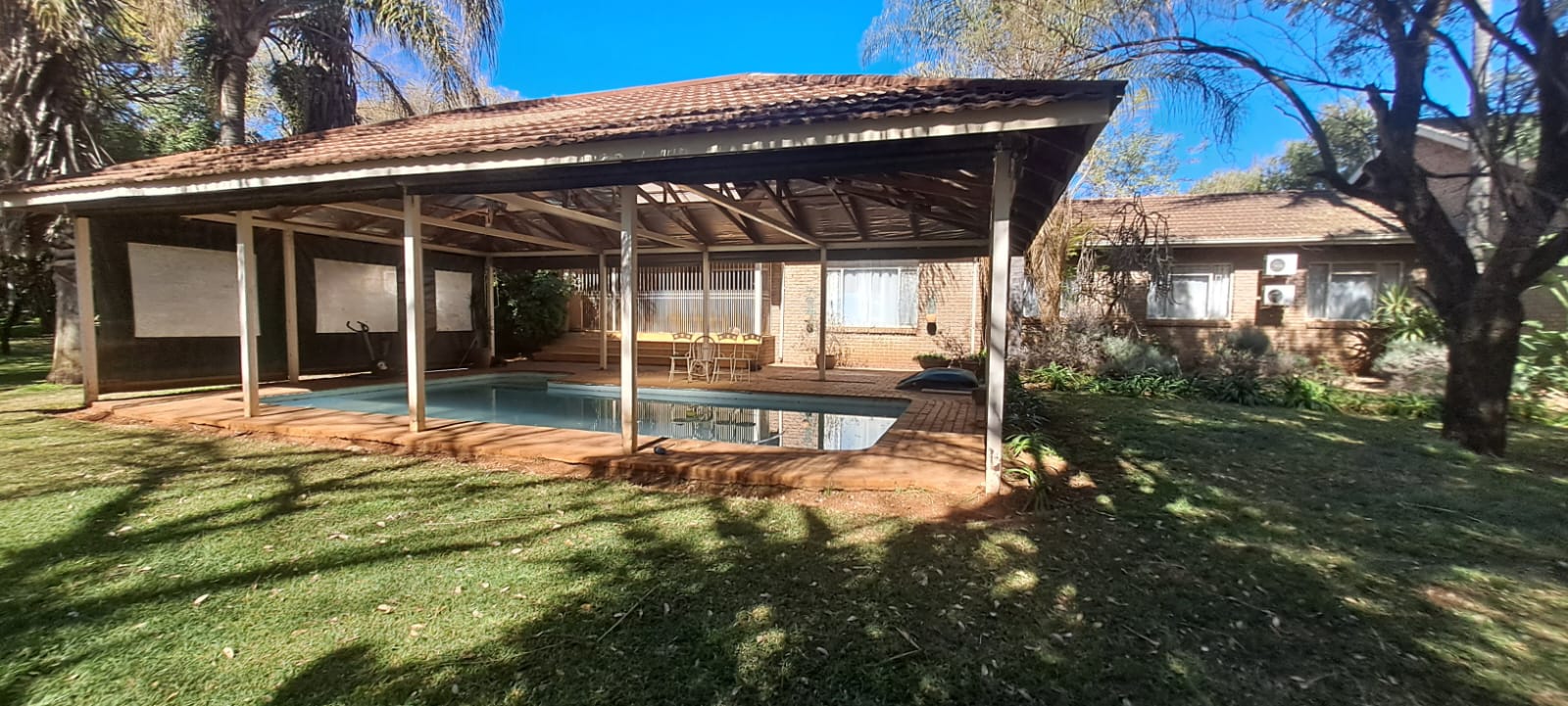 Discover the perfect blend of farming potential and comfortable living with this expansive 3.5-hectare plot, ideally situated close to Rustenburg. This vacant land offers a unique opportunity for part-time farmers looking to cultivate crops or raise livestock, particularly sheep, with ample space to plant grass for feed Property Highlights: • Land and Farming Potential: The plot features vacant land, perfect for crop cultivation or grazing. With 3 boreholes on the property (one equipped with a pump) and a water tank for storage, irrigation can be installed, ensuring your farming activities thrive. Direct irrigation from the borehole maintains the garden currently, making it a lush oasis. • Residential Comfort: The spacious 725m2 house on the property offers various relaxation areas, making it a perfect retreat after a day’s work. The large, heated swimming pool under cover provides a year-round spot for leisure. • Ample Storage and Parking: A massive garage accommodates up to 6 motor vehicles, with plenty of additional storage space. • Garden Flats: An outside building can be renovated into a one bedroom granny flat. There is also another small room in the garden that can be turned into another flat let by building a bathroom and a kitchenette This property is ideal for someone seeking the tranquility of rural life with the convenience of proximity to Rustenburg. Whether you’re looking to start a part-time farming venture or simply want a spacious, versatile property, this plot offers endless possibilities Don’t miss out on this unique opportunity! Contact us today to arrange a viewing and explore the potential of this remarkable plot.