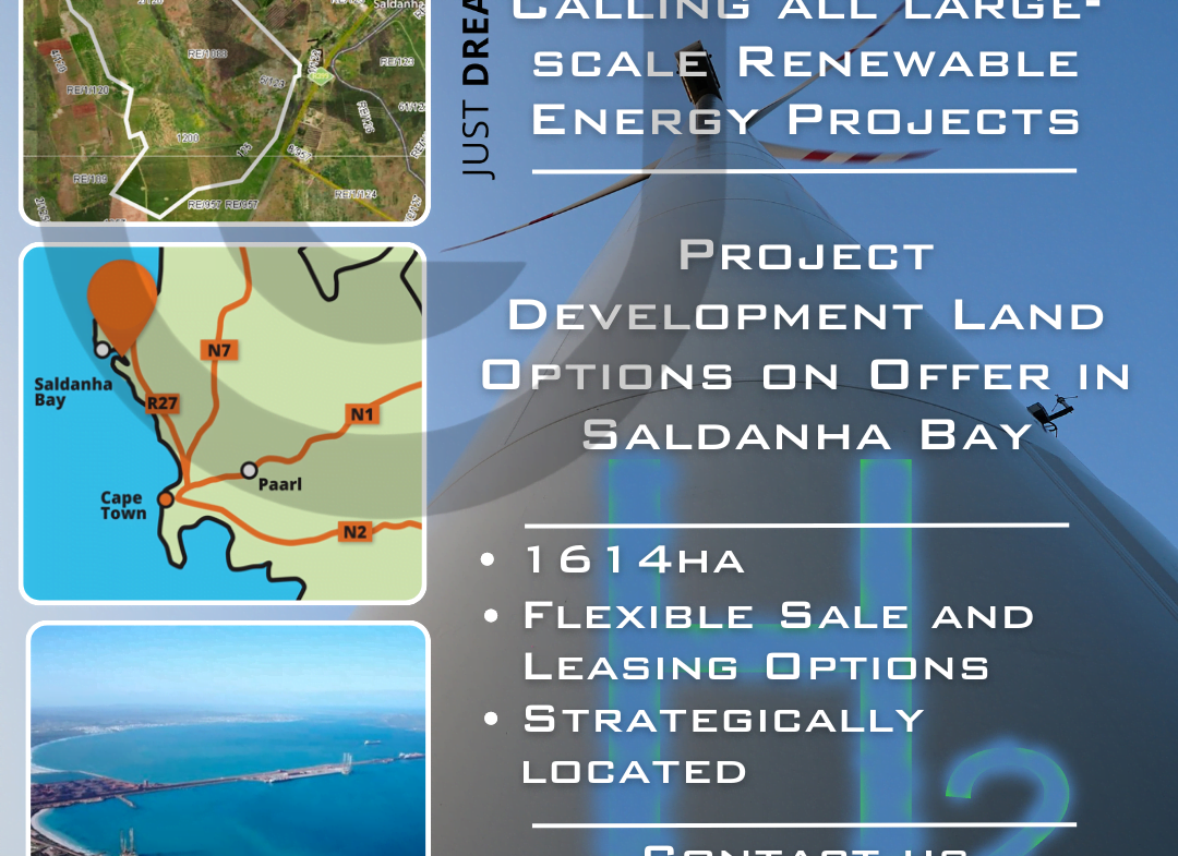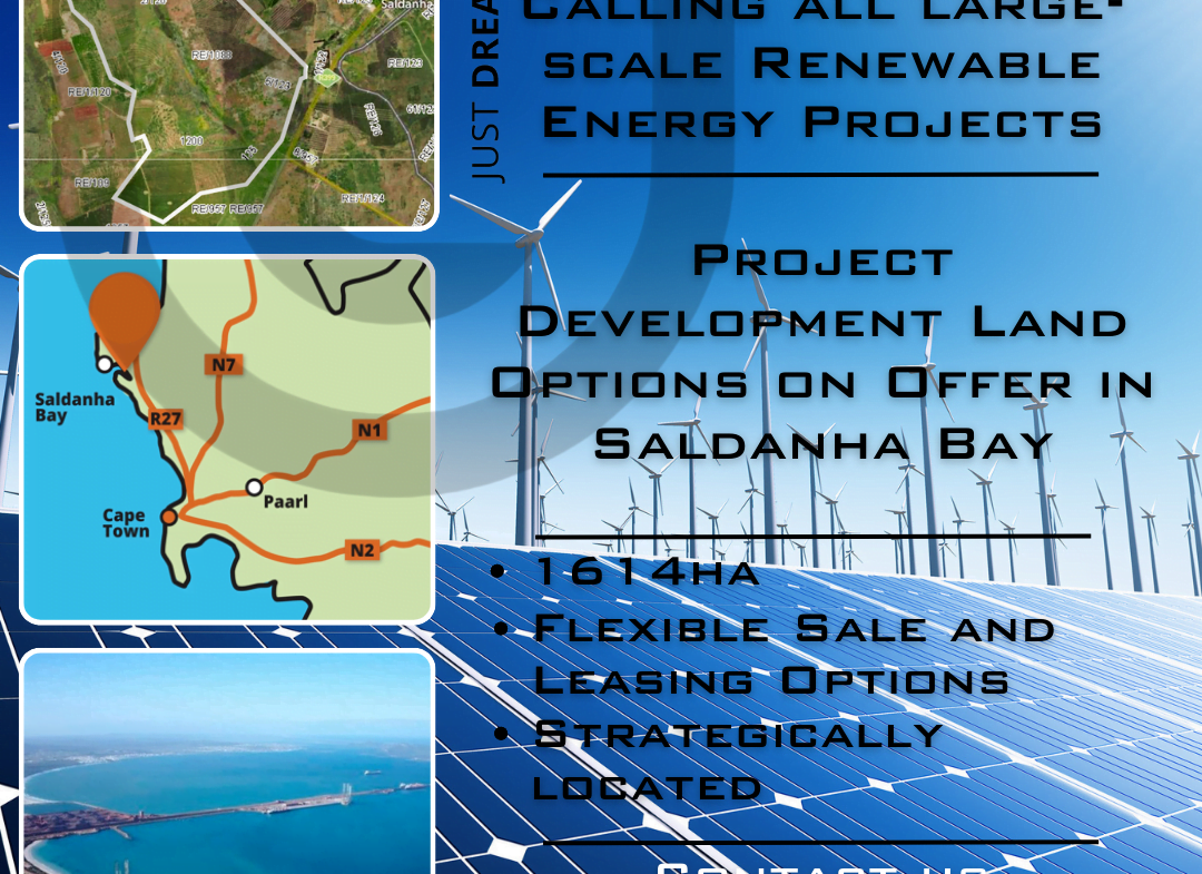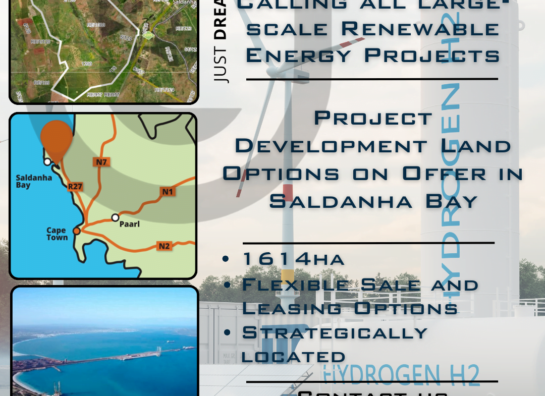 #UrbanLinkWestCoast presents this 1,614ha (16,140 000m2) of prime land for large-scale Renewable Energy/Green Hydrogen Projects development in Saldanha Bay, West Coast.