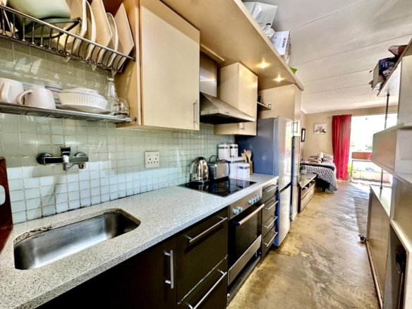 Private bachelor pad with screeded floors and caesarstone kitchen.