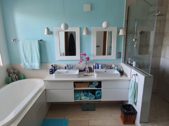 Boasting three en-suite bedrooms, each equipped with air-conditioning and built-in cupboards, this residence offers unparalleled comfort. The main bedroom is a sanctuary, featuring an exquisite walk-in cupboard for your convenience.
