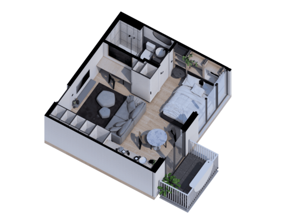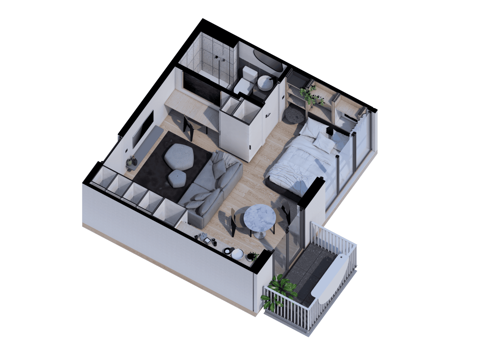 This Studio apartment, situated on the third floor, offers a unique blend of modern living and urban convenience. Each unit is adorned with contemporary finishes and features thoughtfully integrated appliances, and modular furniture – enhancing the feel of the size of the space. Additionally, all apartments within the building offer the option to purchase furnished. This apartment will be Airbnb-ready from day one. The furniture pack includes all large furniture items, through to decor and soft furnishings, as well as window treatments.