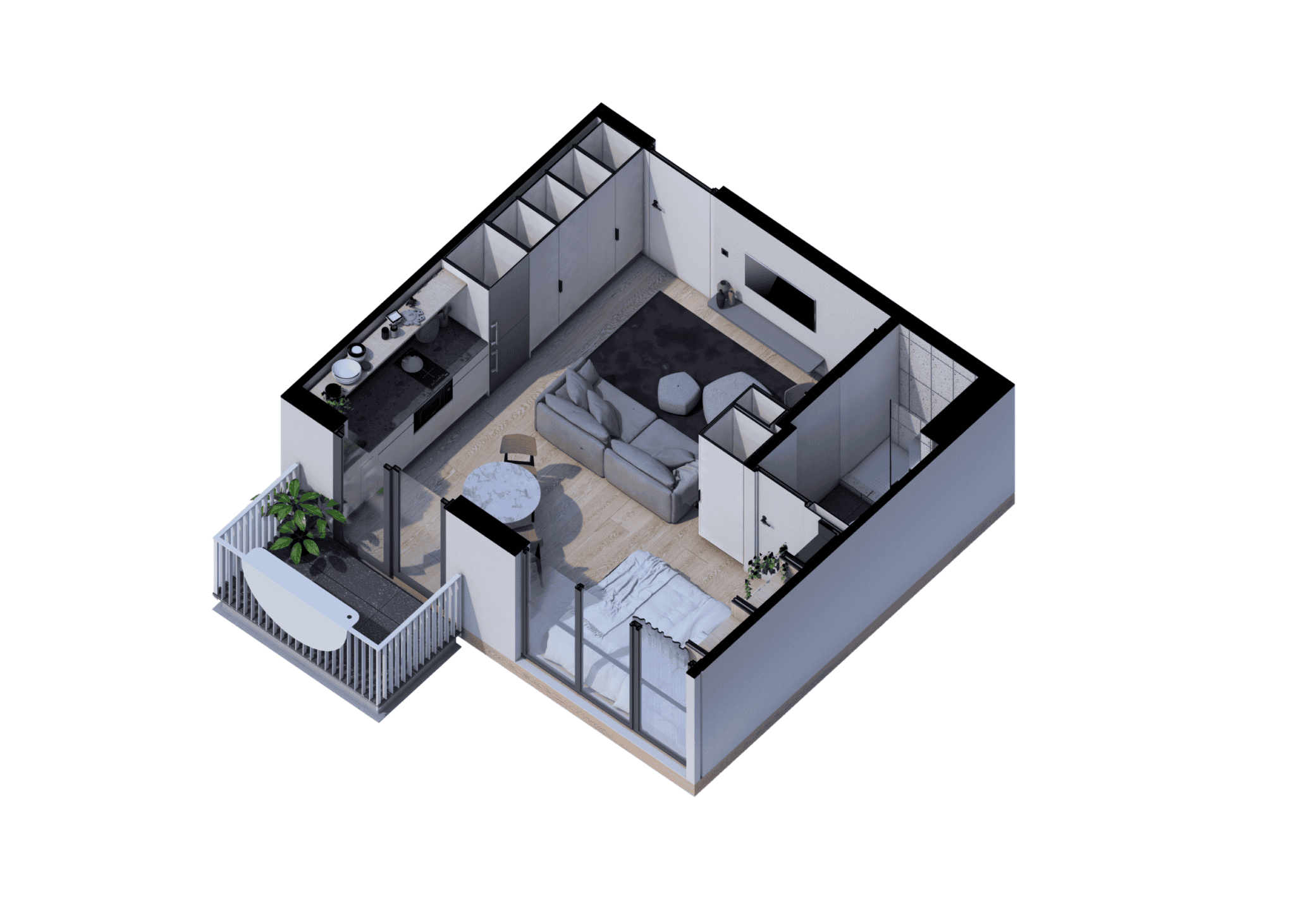 This Studio apartment, situated on the fourth floor, offers a unique blend of modern living and urban convenience. Each unit is adorned with contemporary finishes and features thoughtfully integrated appliances, and modular furniture – enhancing the feel of the size of the space. Additionally, all apartments within the building offer the option to purchase furnished. This apartment will be Airbnb-ready from day one. The furniture pack includes all large furniture items, through to decor and soft furnishings, as well as window treatments.