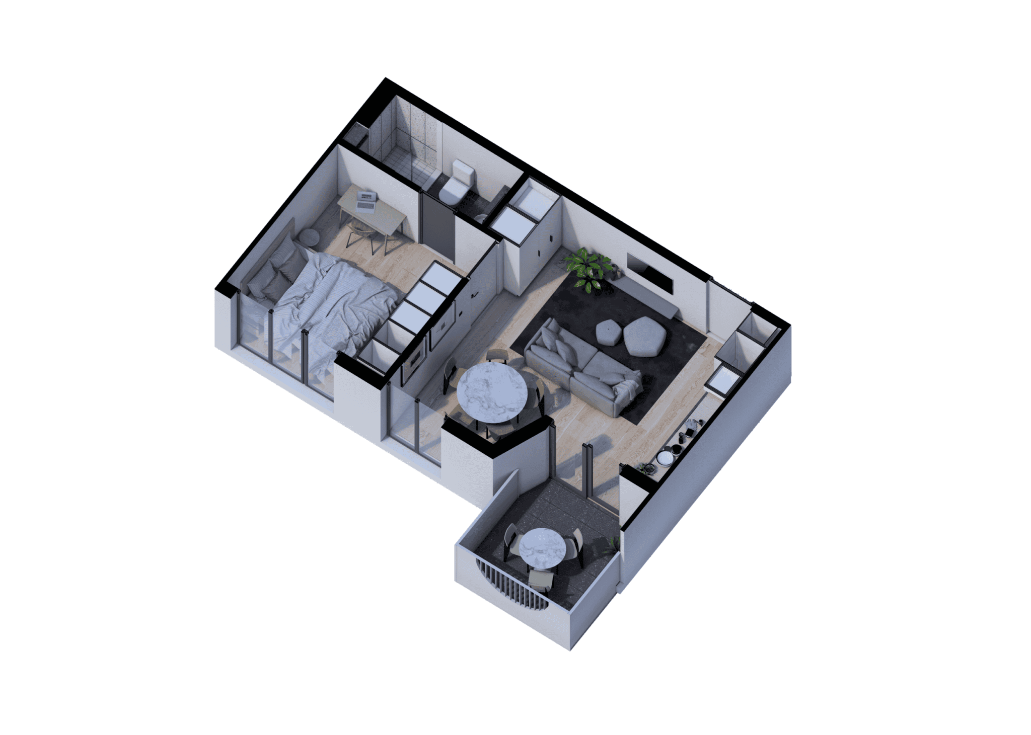 This one-bedroom apartment, situated on the sixth floor, offers a unique blend of modern living and urban convenience. Each unit is adorned with contemporary finishes and features thoughtfully integrated appliances, and modular furniture – enhancing the feel of the size of the space. Additionally, all apartments within the building offer the option to purchase furnished. This apartment will be Airbnb-ready from day one. The furniture pack includes all large furniture items, through to decor and soft furnishings, as well as window treatments.