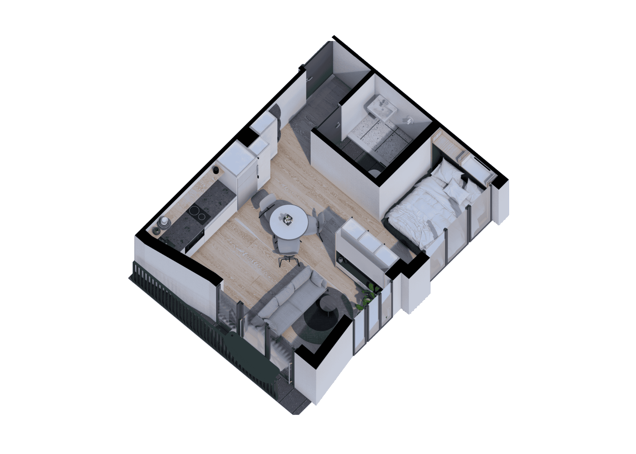 This Studio apartment, situated on the sixth floor, offers a unique blend of modern living and urban convenience. Each unit is adorned with contemporary finishes and features thoughtfully integrated appliances, and modular furniture – enhancing the feel of the size of the space. Additionally, all apartments within the building offer the option to purchase furnished. This apartment will be Airbnb-ready from day one. The furniture pack includes all large furniture items, through to decor and soft furnishings, as well as window treatments.
