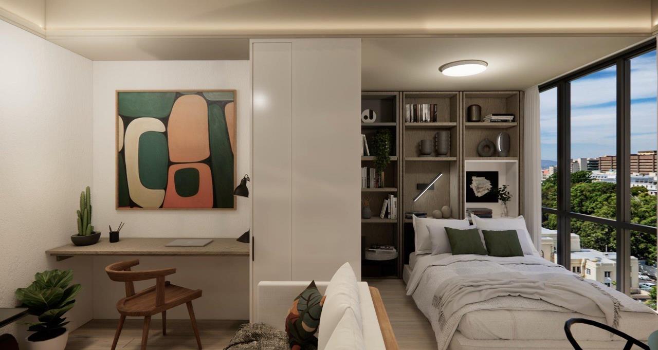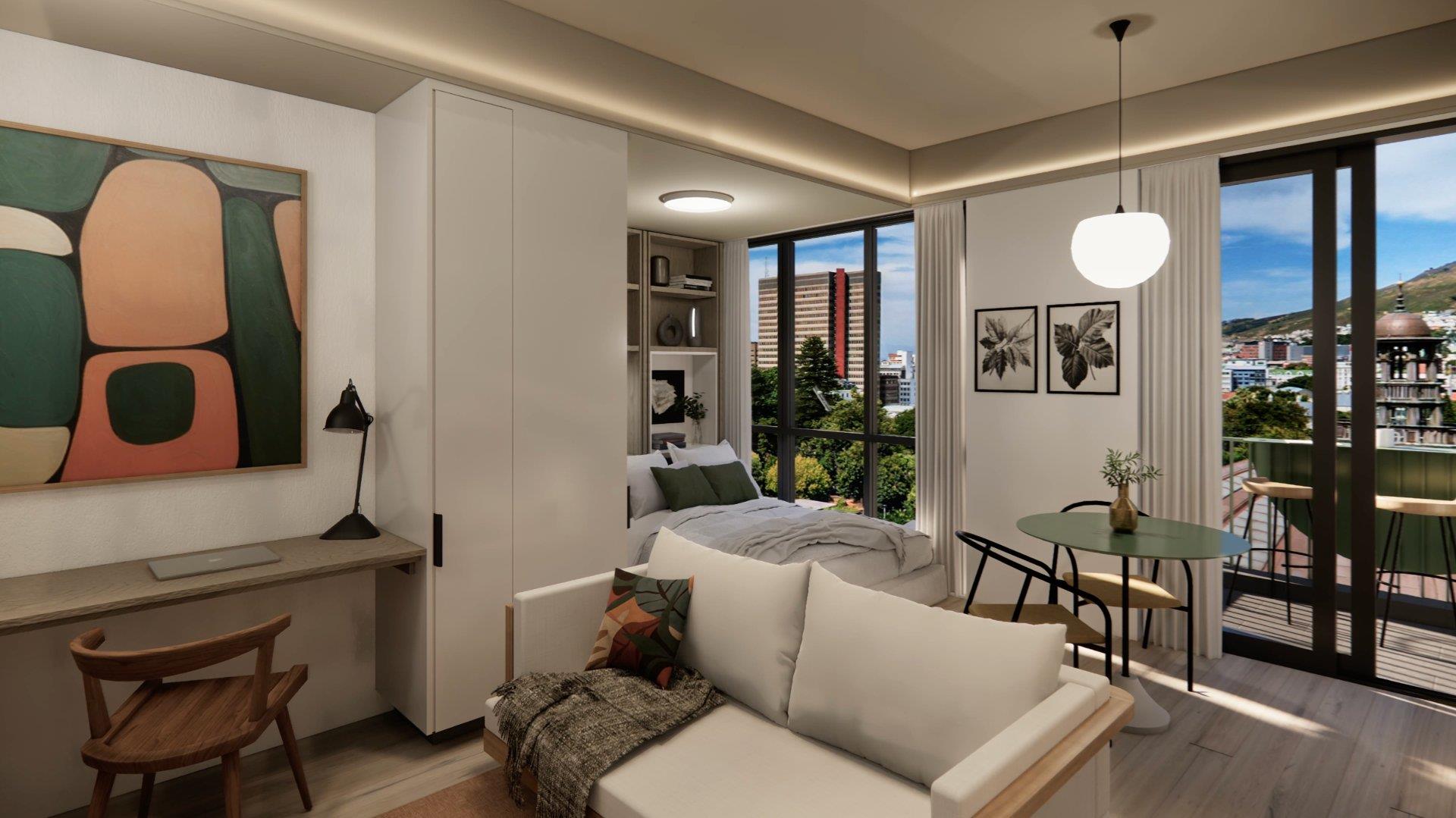 Fully furnished Studio apartment at TENONV, nestled at 10 Vredenburg Lane, in the heart of Cape Town’s City Centre and conveniently situated between the serene Company’s Gardens and vibrant Long, Street.