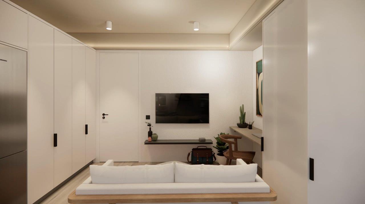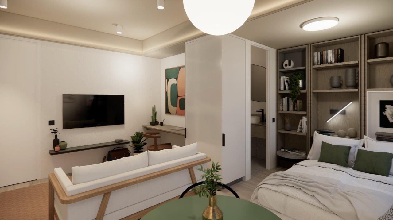 This Studio apartment, situated on the seventh floor, offers a unique blend of modern living and urban convenience. Each unit is adorned with contemporary finishes and features thoughtfully integrated appliances, and modular furniture – enhancing the feel of the size of the space. Additionally, all apartments within the building offer the option to purchase furnished. This apartment will be Airbnb-ready from day one. The furniture pack includes all large furniture items, through to decor and soft furnishings, as well as window treatments.