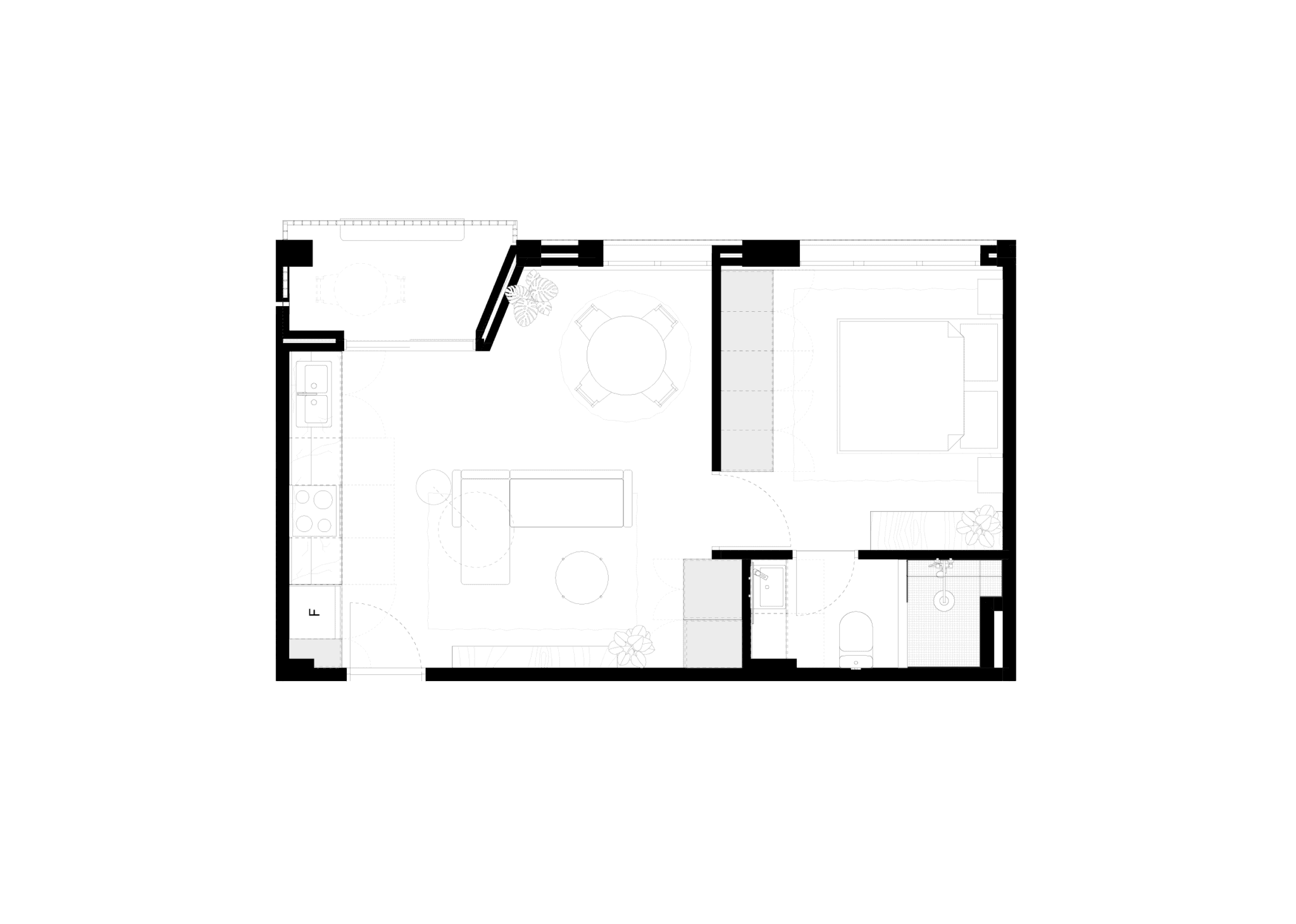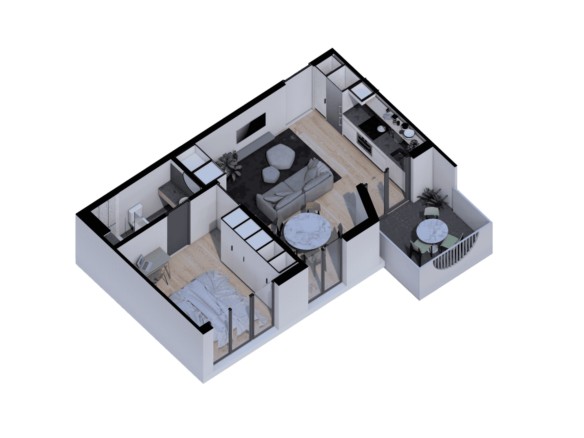 One-bedroom apartment at TENONV, nestled at 10 Vredenburg Lane, in the heart of Cape Town’s City Centre and conveniently situated between the serene Company’s Gardens and vibrant Long, Street.