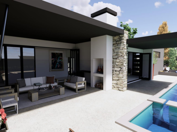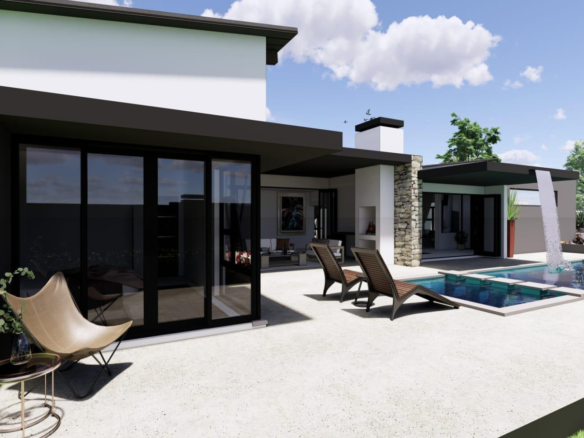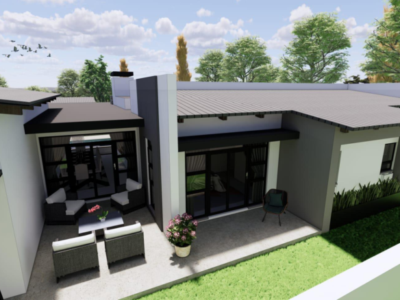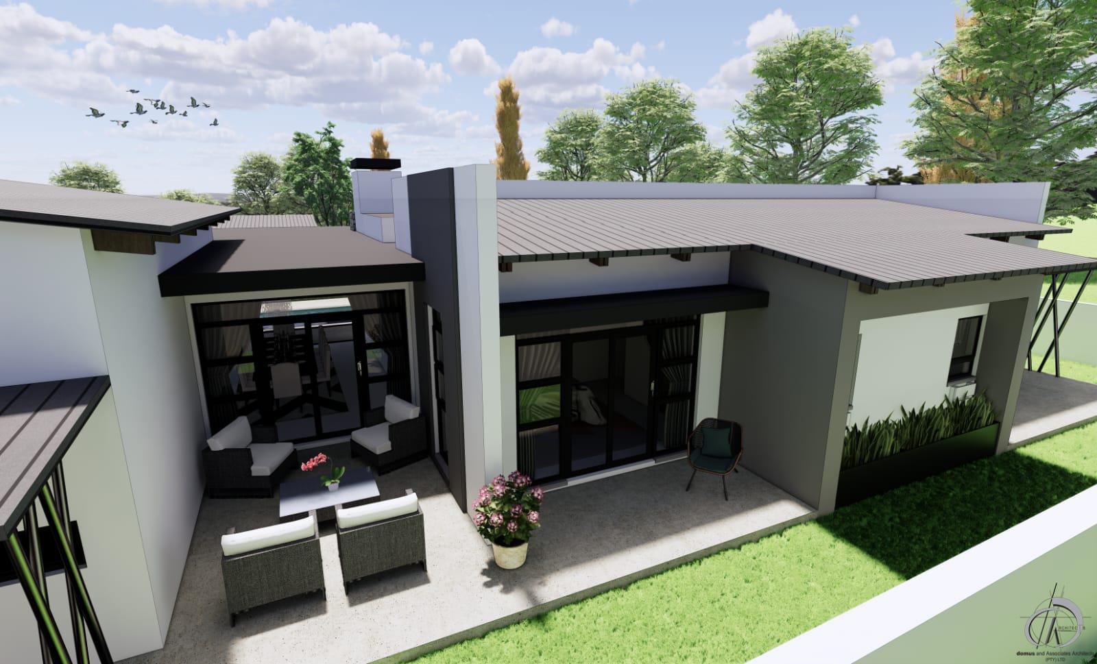 An outdoor entertainment area , covered with a build in braai facility and an outdoor kitchen, any entertainers dream overlooking your crystal clear pool (available as an optional upgrade) forms part of the bushveld scene and Africa’s sunset hue’s paints a different picture every sunset