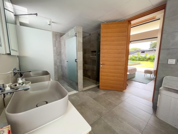 This 4-bedroom ensuite villa is a sanctuary of comfort and style. Each room offers a panoramic view of the lush garden and the expansive pool, seamlessly blending indoor and outdoor living.