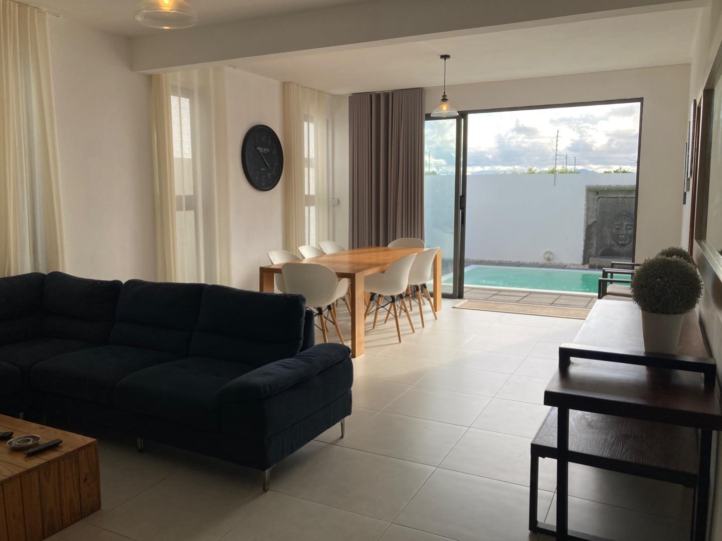 Welcome to this lovely home, located in a quiet residential area within minutes to the beach of Trou D’eau Douce and various amenities. The property boasts a delightful sunrise, complemented by an inviting swimming pool and lounge area, perfect for family gatherings and relaxation.
